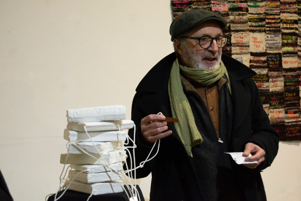 La nostra opera si compone di otto libri ingessati e sovrapposti; rappresenta una propria esperienza che ha formato parte del loro pensiero artistico. Ogni libro è conservato con un involucro puro, senza parola, consumato, ancorato ad una corda bianca, dove è stata applicata un etichetta in rame che riporta titolo, autore e anno della pubblicazione.