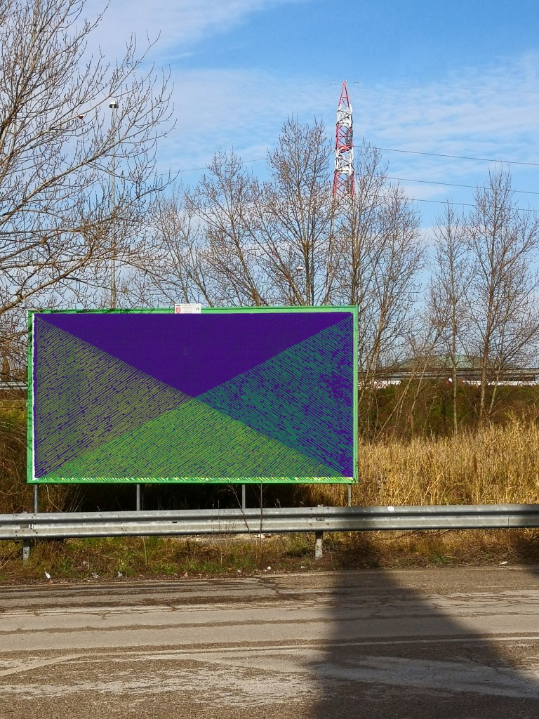 Silkscreen series inserted into photographs of empty billboards, hence, Virtual Billboards.